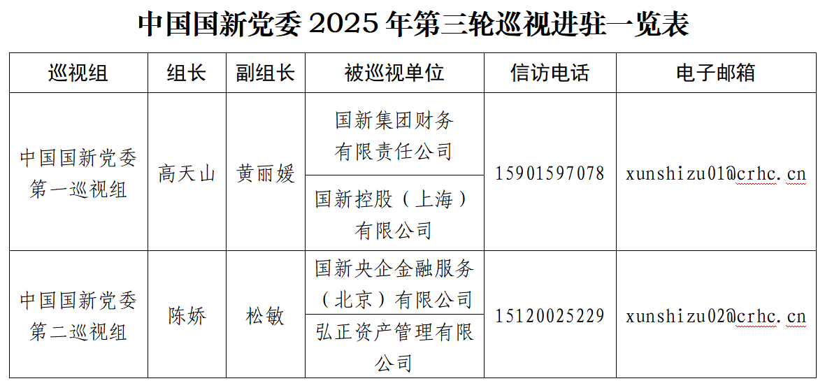 巡視期間,巡視組設(shè)有專門值班電話、電子郵箱,受理反映被巡視企業(yè)領(lǐng)導(dǎo)班子及其成員、下一級主要負(fù)責(zé)人和重要崗位領(lǐng)導(dǎo)干部問題的來信來電來訪。巡視組受理信訪時間截止到2025年11月14日。